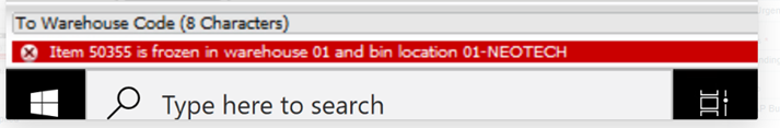 ? “Item is frozen in warehouse and bin location” — but nothing was frozen